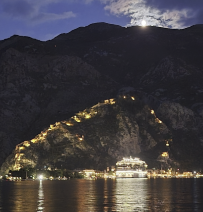 Aber dieser Abend in Kotor war einfach magisch: das warme Licht auf den alten Mauern, die Stadt in sanftem Glanz – und dann kam auch noch der Vollmond hinter dem Berg hervor. Dieses Bild von der beleuchteten Stadtmauer werde ich wohl nie vergessen. Was für ein wunderschöner Abschluss unseres Aufenthalts in Kotor!