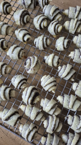 Anschließend 230 g Butter, 70 g Puderzucker, 2 TL Vanilleextrakt, ½ TL Salz und 280 g Mehl gut miteinander vermengen. Die gerösteten Nüsse und die Schokolade unter den Teig heben und diesen danach kühl stellen.