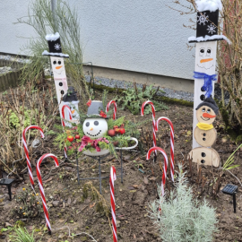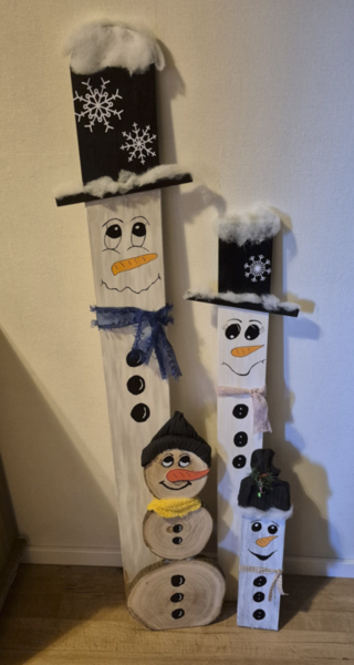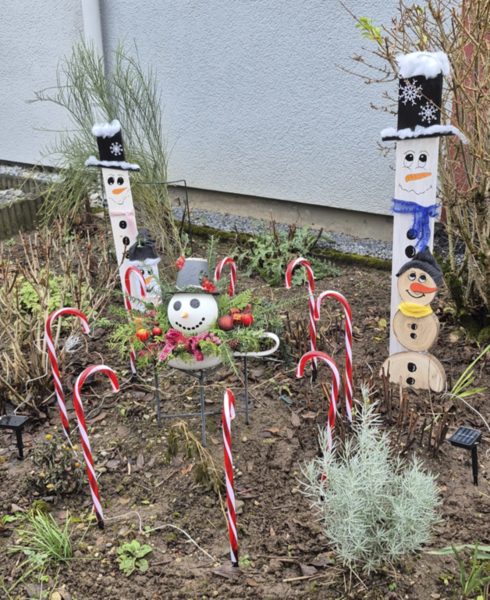 Diese fröhlichen Schneemänner habe ich für unseren Vorgarten gestaltet – aus einfachen Holzlatten und rustikalen Baumscheiben. Jeder einzelne ist von Hand bemalt und bekommt so seinen ganz eigenen Charakter. Perfekt, um im Winter für etwas Extra-Charme und gute Laune zu sorgen!