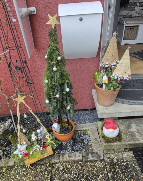 Anstatt wie letztes Jahr einen Wichtel zu basteln, habe ich mir dieses Jahr dieses kleine Bäumchen für vor die Tür gebunden. Geht super schnell und macht richtig Spaß! Ich glaube, fürs nächste Jahr mache ich auch ein paar kleinere davon.