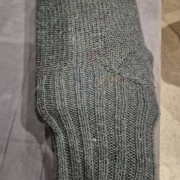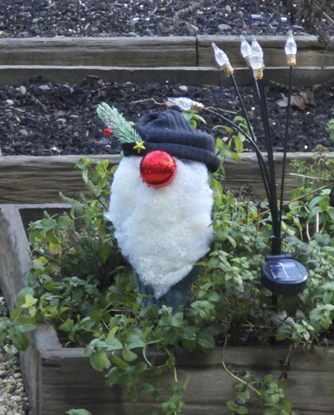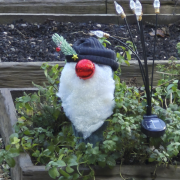 Für die Mütze habe ich einfach ein Stück Ärmel von einem alten Pullover abgeschnitten – zack, schon ist der Wichtel bereit für den Garten.