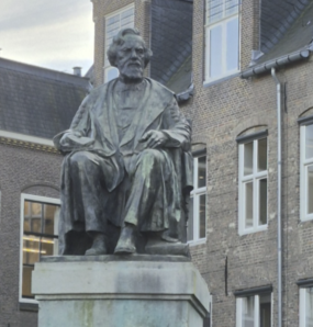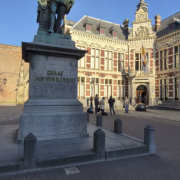 Vor einem weiteren Gebäude der Utrecht Universität steht die Statue von Hendrik Antoon Lorentz. Er war ein berühmter niederländischer Physiker und Nobelpreisträger, hat hier studiert und später auch gelehrt – also ein echtes Uni-Schwergewicht, dem man genau hier ein Denkmal gesetzt hat.