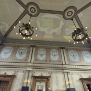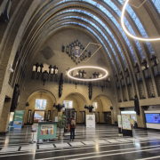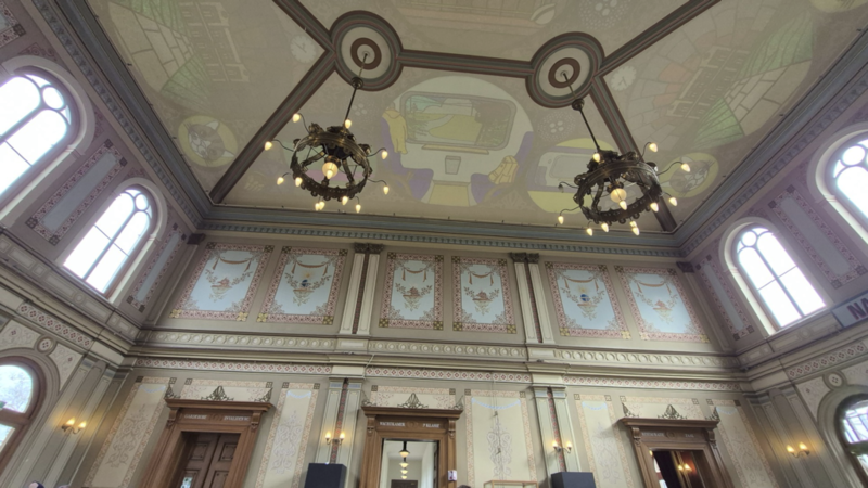 Und dann gibt’s noch eine die Bibliothek im alten Postgebäude. Von außen eher unscheinbar, aber auffallen wird sie euch trotzdem, vor allem wegen der bunten Neon-Reklame über dem Eingang. Innen lohnt sich dann wirklich ein Blick: eine große, offene Halle mit hohen Decken und schönen Glasbogenfenstern, durch die richtig viel Licht fällt.