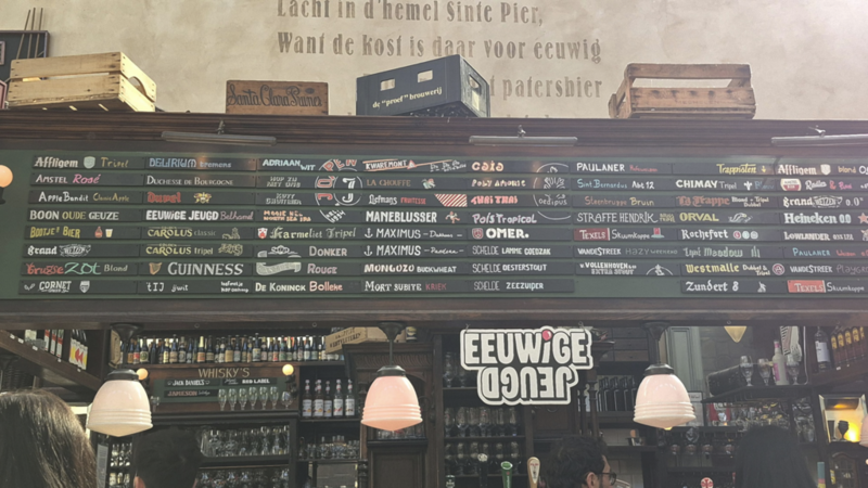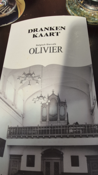 Das Café Olivier ist eine belgische Bierkneipe in einer alten Kirche. Von außen wirkt das Gebäude gar nicht wie eine Kirche, aber innen sind noch viele Details erhalten – sogar die Orgel steht noch dort, zusammen mit weiteren alten Elementen.