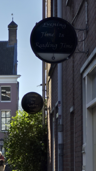 Danach haben wir noch einen kurzen Abstecher in die Korte Smeestraat gemacht. Dort gibt es an jedem Haus ein besonderes Schild: Anfang der 90er-Jahre wurden sie im Rahmen eines Kunstprojekts an den Hauseingängen angebracht.