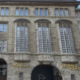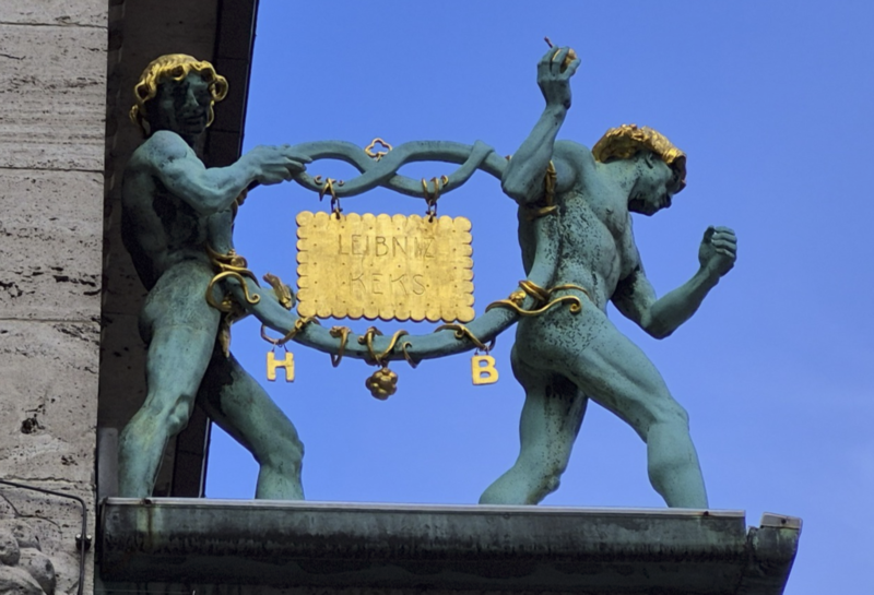 Geht man dann einmal vorne herum, entdeckt man das wirklich schöne Firmengebäude… und natürlich den berühmten goldenen Leibniz-Keks. Schon irgendwie cool, wenn ein Keks zum Fotomotiv wird.