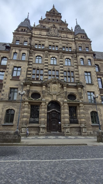 Fürs Abendessen hatten wir uns das Pfannkuchenhaus Hannover ausgesucht. Auf dem Weg dorthin kamen wir noch am Polizeipräsidium Hannover vorbei – ein echt beeindruckender Bau mit einer spannenden Geschichte, die auf einer Tafel daneben erklärt wird.
