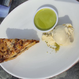Zurück im Hotel haben wir uns dann noch einen richtig guten Apfelstrudel mit Pistaziencreme auf der Dachterrasse gegönnt – mit traumhaftem Ausblick über den See.