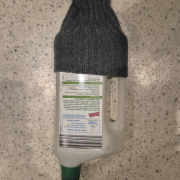Ich liebe es ja, mit Alltagsmaterialien zu basteln! Für diesen kleinen Wichtel braucht ihr nur eine leere, etwas breitere Flasche – am besten eine von Waschpulver. Darüber stülpt ihr einen alten Socken, klebt aus etwas Watte den Bart und eine kleine Kugel als Nase auf.