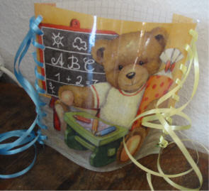 In diese kleinen Tüten passen entweder ein paar Süßigkeiten oder praktische Kleinigkeiten wie ein Mini-Block, ein kleiner Bleistift und ein Radiergummi.