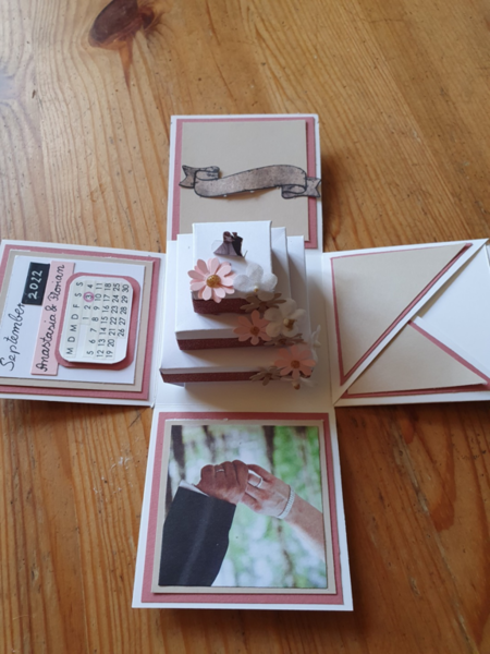 So eine Explosionsbox ist immer wieder ein schönes Geschenk. Man kann Geld oder Gutscheine darin unterbringen.