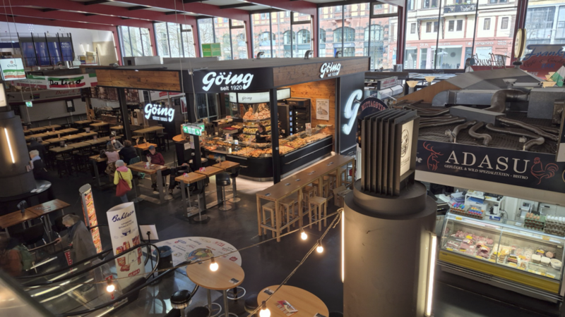 In der Markthalle selbst gibt es wirklich alles Mögliche zu kaufen, und auch genügend Sitzplätze, um sich dort ganz entspannt etwas zu essen zu gönnen. Im Obergeschoss befindet sich außerdem ein Bahlsen-Outlet – die Firma hat ihren Sitz in Hannover. Dazu zeige ich euch später noch ein paar Bilder.