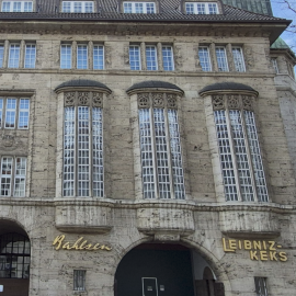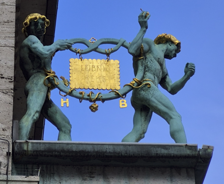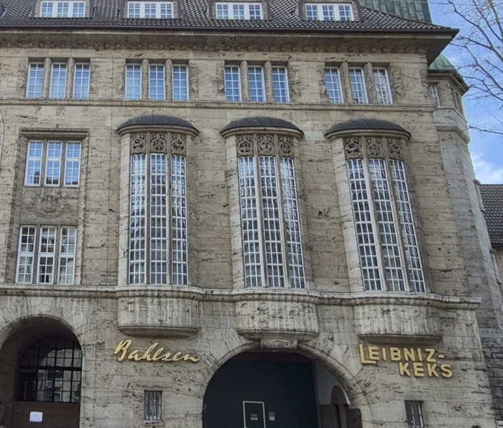 Geht man dann einmal vorne herum, entdeckt man das wirklich schöne Firmengebäude… und natürlich den berühmten goldenen Leibniz-Keks. Schon irgendwie cool, wenn ein Keks zum Fotomotiv wird.