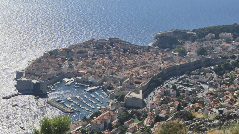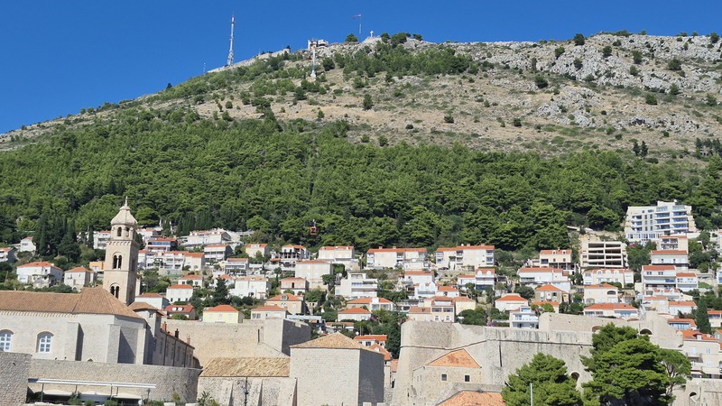 Vom Hafen aus sieht man auch gut die Seilbahn, die auf den Hausberg Srd führt – oben erwartet einen ein spektakulärer Panoramablick über die