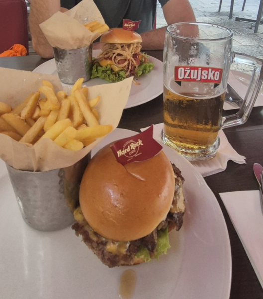 Nach unserer kleinen Tour sind wir nochmal zurück in die Altstadt gelaufen – und haben’s uns essentechnisch mal ganz unkompliziert gemacht: Burger im Hard Rock Café. Klingt jetzt nicht besonders landestypisch, aber hey – wir waren tatsächlich noch nie in einem Hard Rock Café, also irgendwie doch eine Premiere! Und was soll man sagen: Die Burger waren richtig gut. Manchmal braucht’s eben einfach nur gutes Fast Food und kalte Getränke.