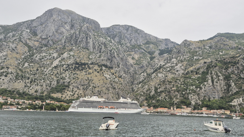Wieder unten in Kotor angekommen, stellten wir fest, dass sich auch hier das Wetter komplett verändert hatte. Der Wind, der uns oben im Lovćen schon fast weggeblasen hatte, war nun auch in der Stadt angekommen. Sogar einige Kreuzfahrtschiffe hatten ihre Route geändert – das sagt wohl alles über die Windstärke.