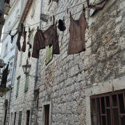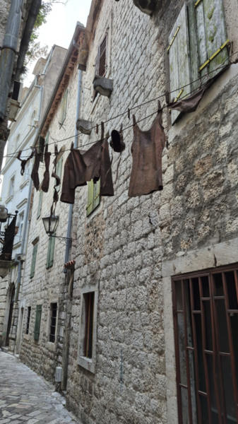 In Kotor gibt es natürlich jede Menge Kirchen zu entdecken, jede mit ihrem ganz eigenen Charme und einer spannenden Geschichte. Besonders beeindruckt hat mich, wie Kunst und Alltag hier auf besondere Weise zusammenkommen – zum Beispiel eine ganz außergewöhnliche Installation: Wäsche, die als Kunstobjekt aus Metall gestaltet ist.