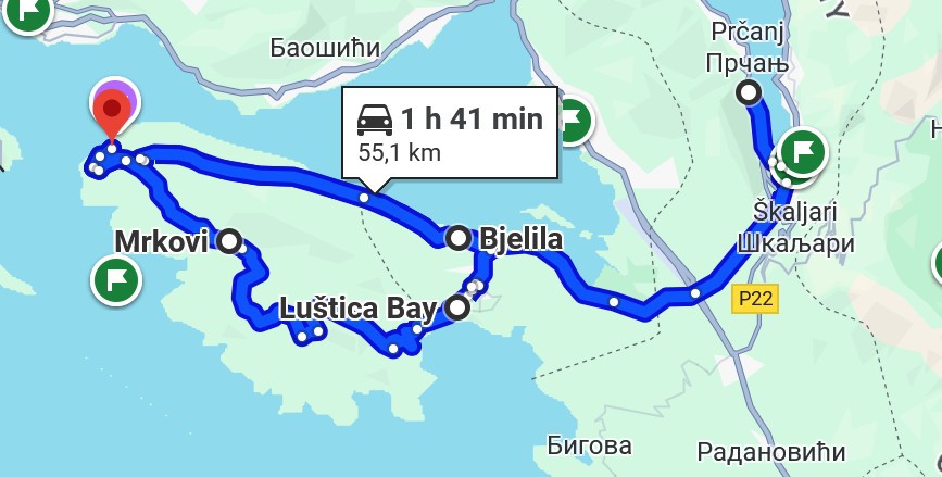 Von hier kann man mit kleinen Booten zur Insel „Unsere Liebe Frau vom Felsen“ (Gospa od Škrpjela) fahren. Sie ist eine künstlich aufgeschüttete Insel mit einer hübschen Kirche und einem kleinen Museum. Der Legende nach haben Fischer hier einst eine Marienfigur im Meer gefunden und daraufhin die Insel Stein für Stein errichtet. Heute ist sie eines der bekanntesten Ausflugsziele in der Bucht von Kotor.