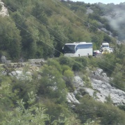 Es gibt wohl auch einen Bus, der direkt vor der Unterkunft hält, wenn man die Hand raushält. Der soll ungefähr einmal pro Stunde fahren. Allerdings herrscht rund um Kotor ein echtes Verkehrschaos, sodass der Bus meistens zu anderen Zeiten kommt als geplant. Wir haben das vom Balkon aus beobachtet und gemerkt, dass er auch nicht wirklich schnell vorankommt. Zu Fuß waren wir jedenfalls meistens schneller.